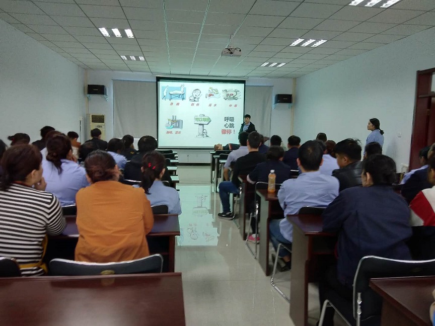 本次培訓(xùn)主要圍繞安全健康理念、急救常識(shí)、職業(yè)病防護(hù)、常用急救方法等內(nèi)容開(kāi)展。培訓(xùn)現(xiàn)場(chǎng),聶老師使用人體模型為大家做了急救模擬,并邀請(qǐng)公司員工進(jìn)行現(xiàn)場(chǎng)演示。