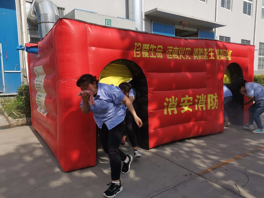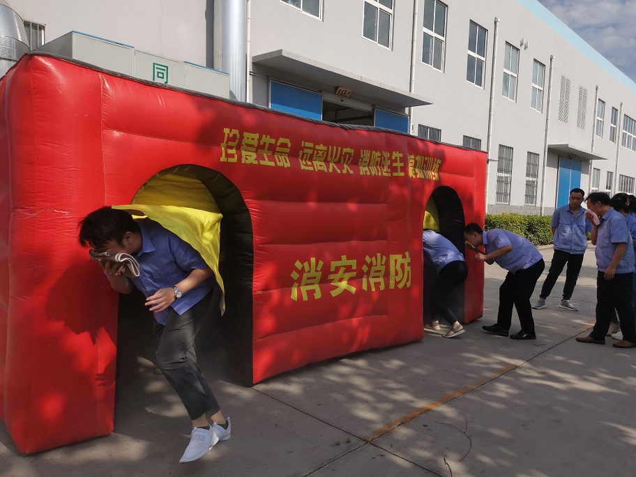 最后進行了火場逃生演練,張老師為大家講解正確的火場疏散逃生方法,員工們認真參與,切身感受了一場“濃煙滾滾”。